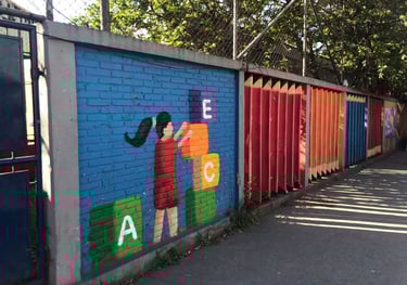 Pintura interna e externa, sinalização visual e educativa. Projetos que transformam o chão em arte, com intervenções criativas que incentivam brincadeiras e o uso coletivo do espaço.