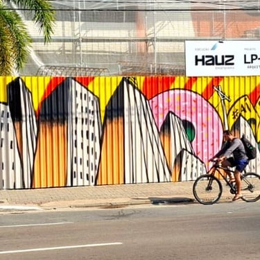 Nesta linha de trabalho, desenvolvo murais personalizados que dialogam com a identidade de cada espaço — sejam empenas, fachadas, interiores corporativos ou áreas públicas.