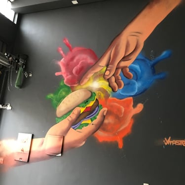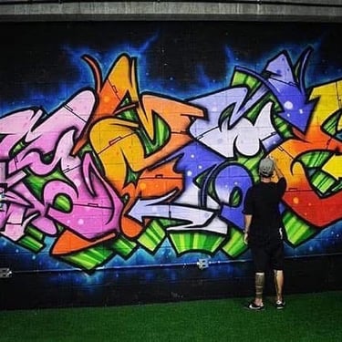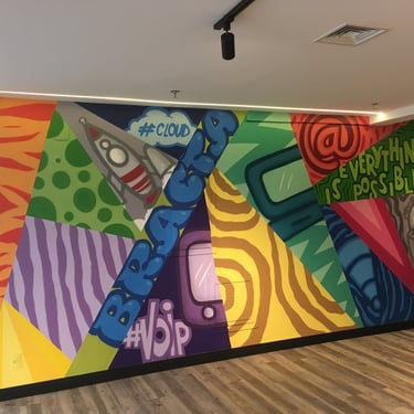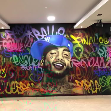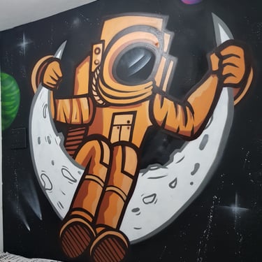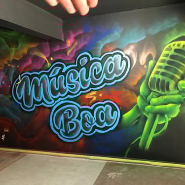 Através de pintura artística, lettering e composição visual autoral, cada mural é criado com sensibilidade e propósito, valorizando a arquitetura, o público e a mensagem que o local deseja transmitir.